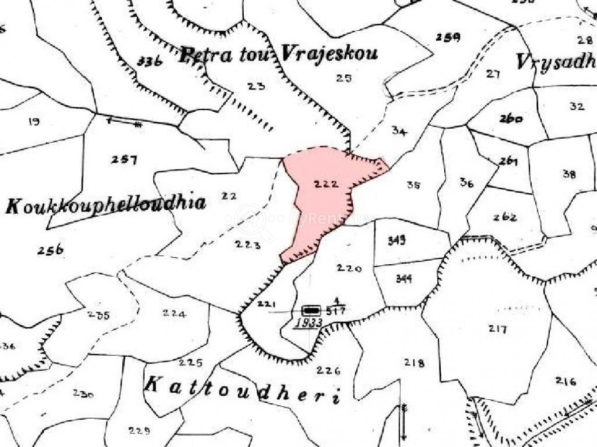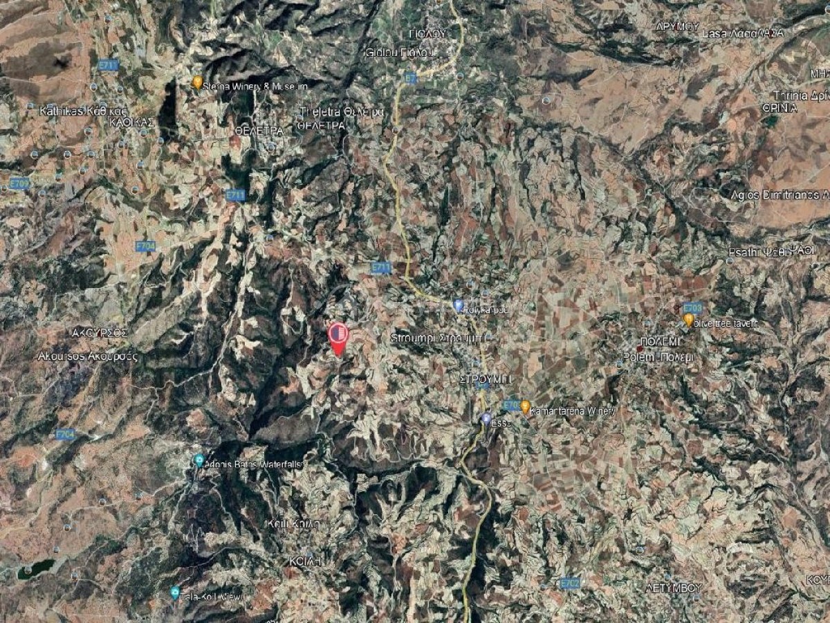 Agricultural field in Stroumpi Community in Paphos District. The property is located about 2.1 kilometers northwest from the center of the community and about 980 meters southof the main road connecting the villages of Stroumpi and Kathika.