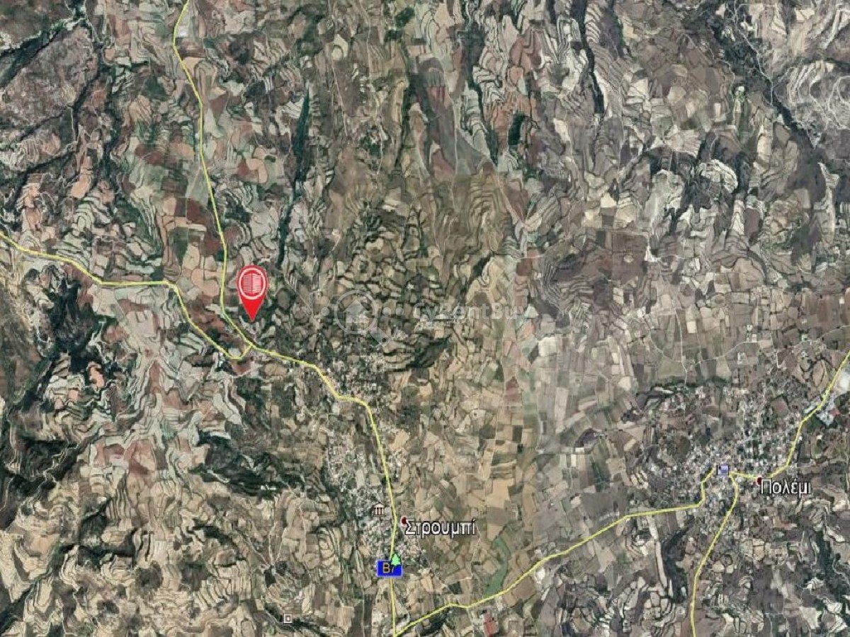 The property for sale is a field which lies within the administrative boundaries of Stroumpi village, in Paphos District, at a distance of approximately 1,5km northwest of the core of the village and at a distance of 160 meters east of Paphos-Polis Chrysochous main road.