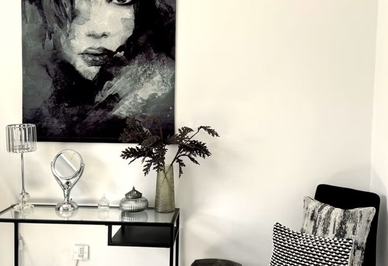 Квартира предлагает светлую гостиную зону и полностью оборудованную кухню с посудой и всеми необходимыми принадлежностями – идеально для повседневной жизни и приема гостей.