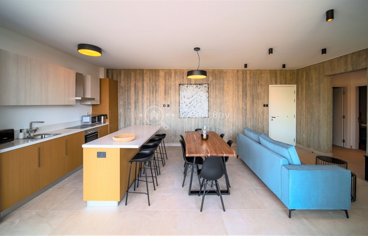 The building is equipped with an elevator for convenience. Inside, a modern open-plan living area connects seamlessly with the kitchen and dining space.