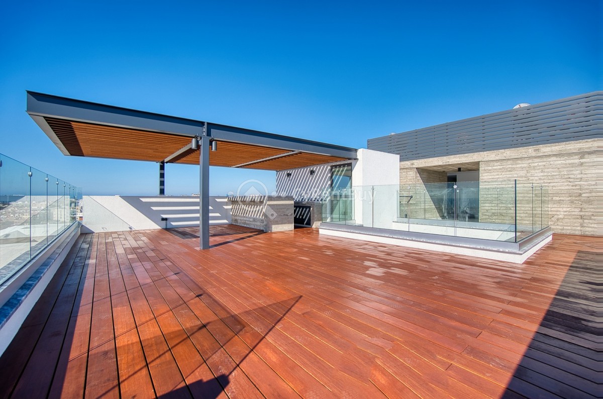 Residents can enjoy a breathtaking rooftop swimming pool and lounge area with panoramic sea views, as well as an on site gym.