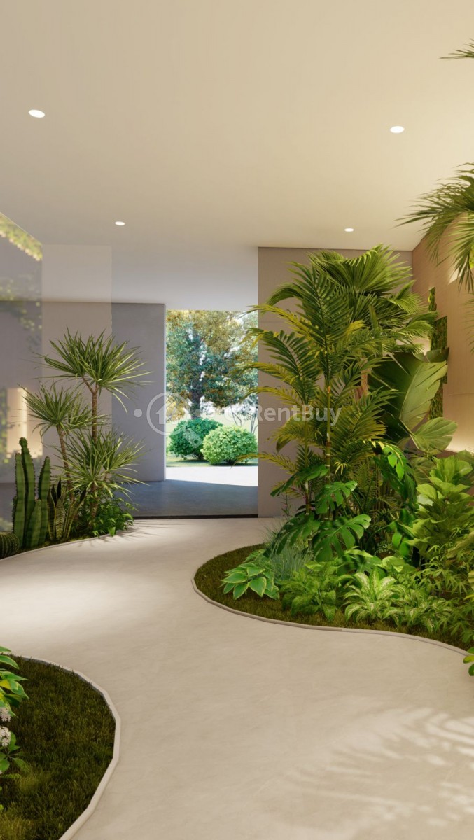 Комплекс окружён зелёными насаждениями, натуральным камнем и водными элементами с охлаждающим туманом, создающими здоровую и сбалансированную среду для жизни. Каждый элемент — от растений до естественного света — продуман для улучшения самочувствия и энергоэффективности.
