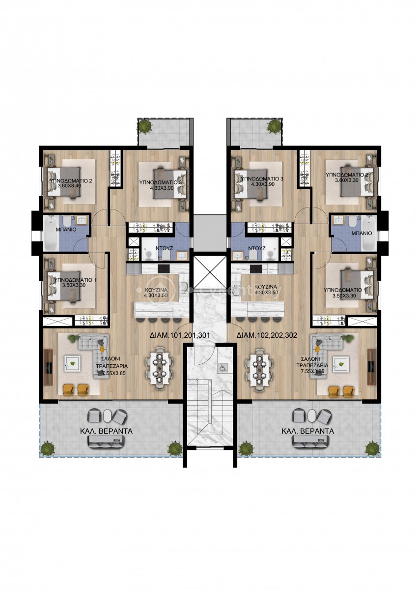 Large windows fill the space with natural light, enhancing the sense of openness and comfort. Each bedroom provides plenty of room and storage, while the bathrooms feature high-quality finishes for a luxurious feel.
