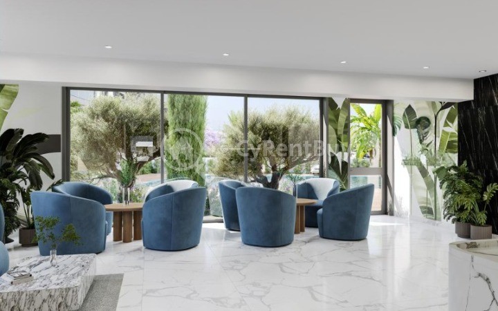 The development is enriched with premium lifestyle amenities, including a large communal swimming pool surrounded by lush landscaped gardens—perfect for relaxation under the Cyprus sun. A fully equipped gym overlooking the pool provides a motivating space for maintaining an active lifestyle.