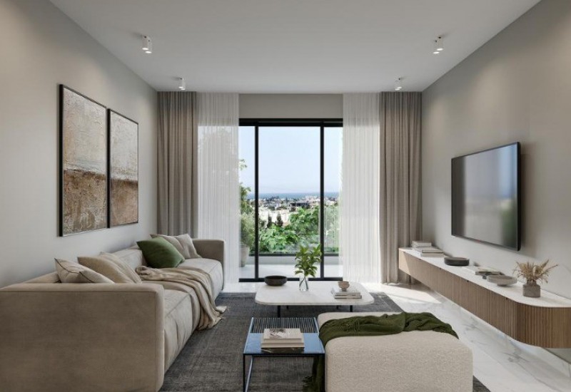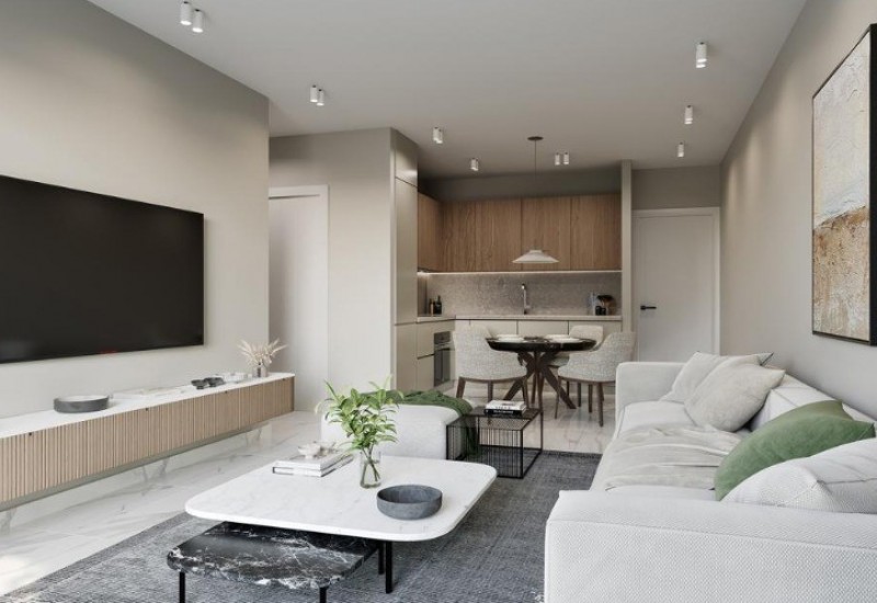 The development is enriched with premium lifestyle amenities, including a large communal swimming pool surrounded by lush landscaped gardens—perfect for relaxation under the Cyprus sun. A fully equipped gym overlooking the pool provides a motivating space for maintaining an active lifestyle.