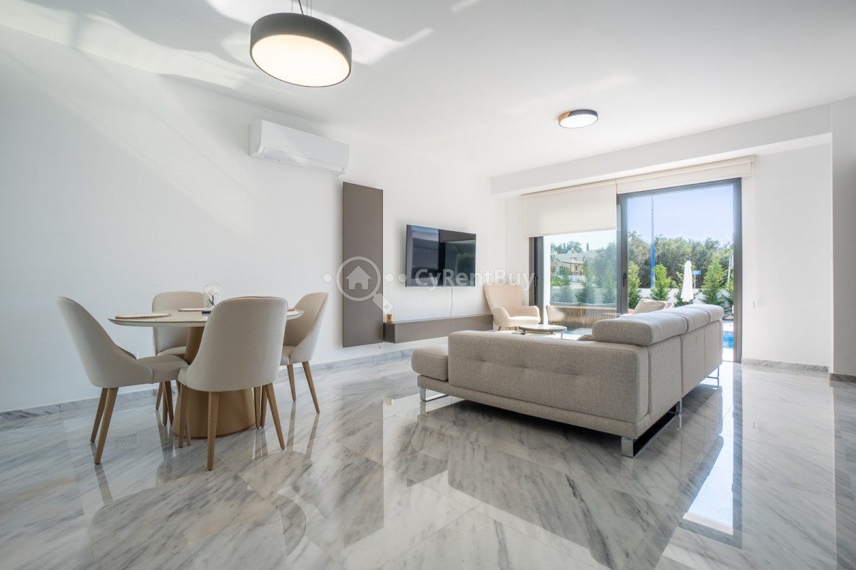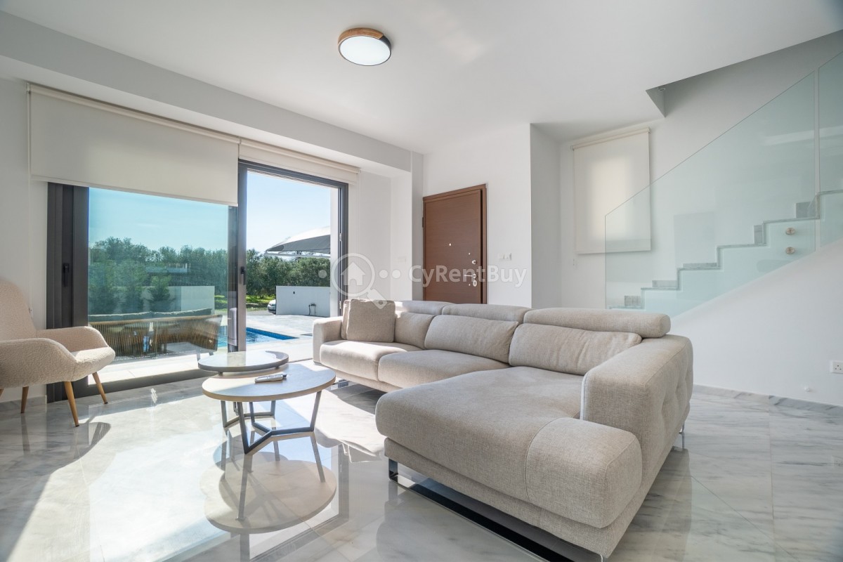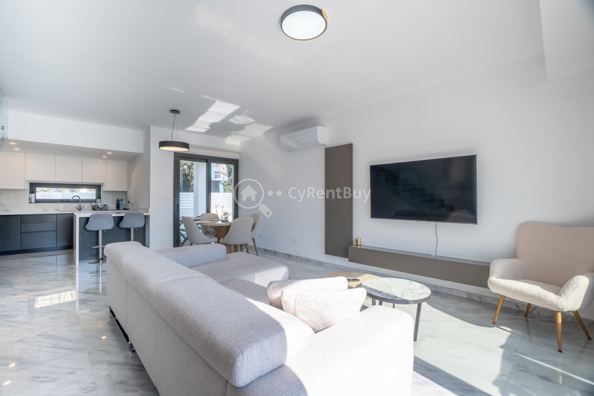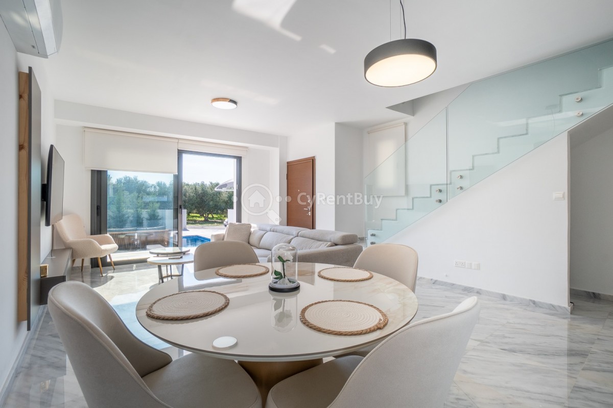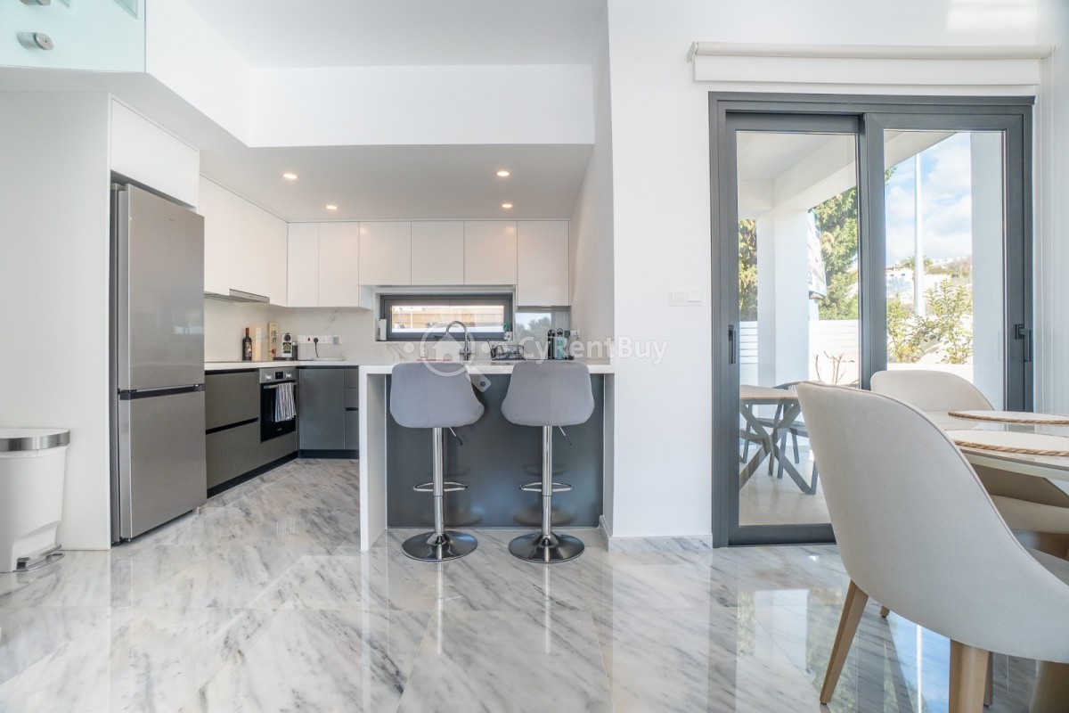 Эта просторная вилла с тремя спальнями в районе Хлорака полностью меблирована и готова к заселению сразу. Планировка открытого типа включает современную кухню со всей необходимой бытовой техникой, которая плавно переходит в гостиную и обеденную зону, создавая светлое и уютное пространство.