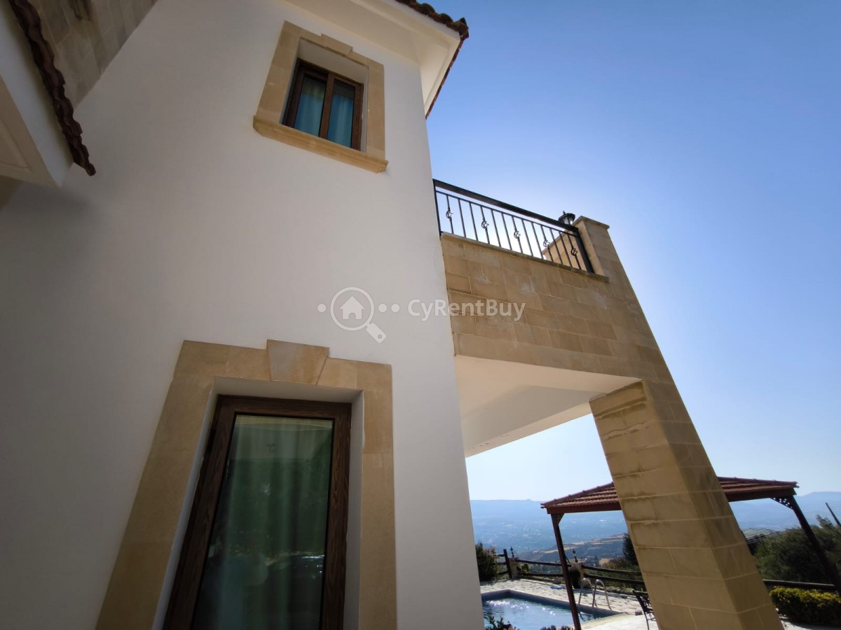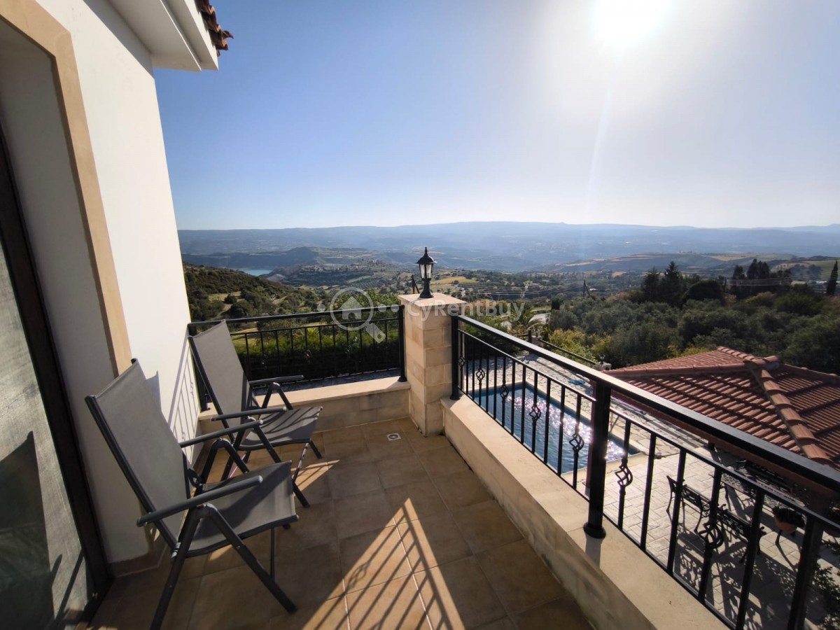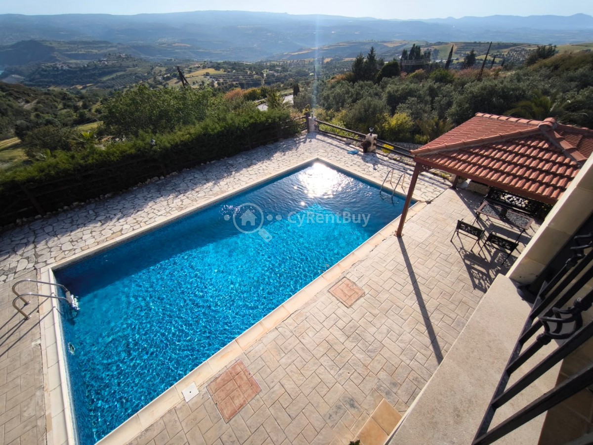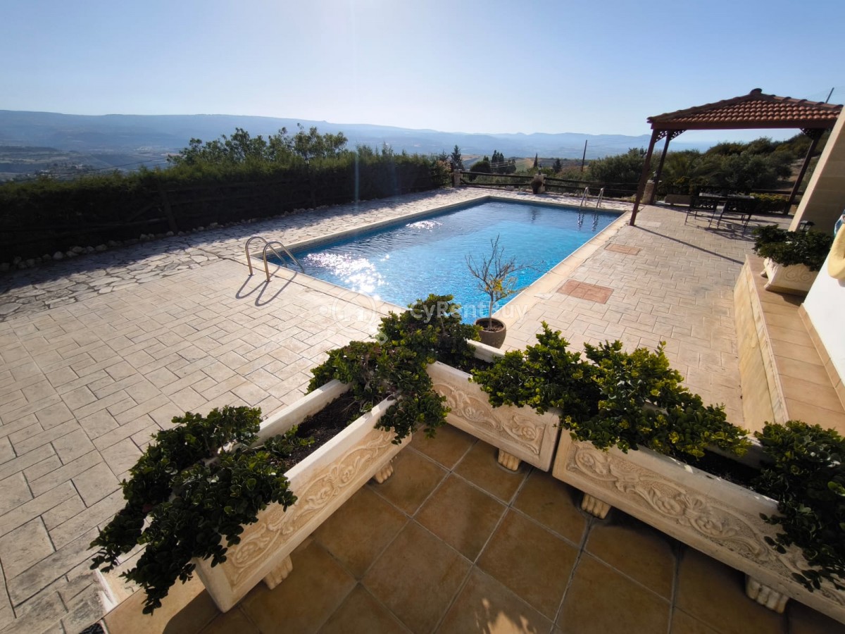 Boasting a spacious private swimming pool and expansive garden, the property is framed by breathtaking panoramic views of the sea and surrounding mountains.