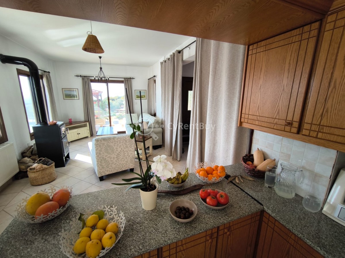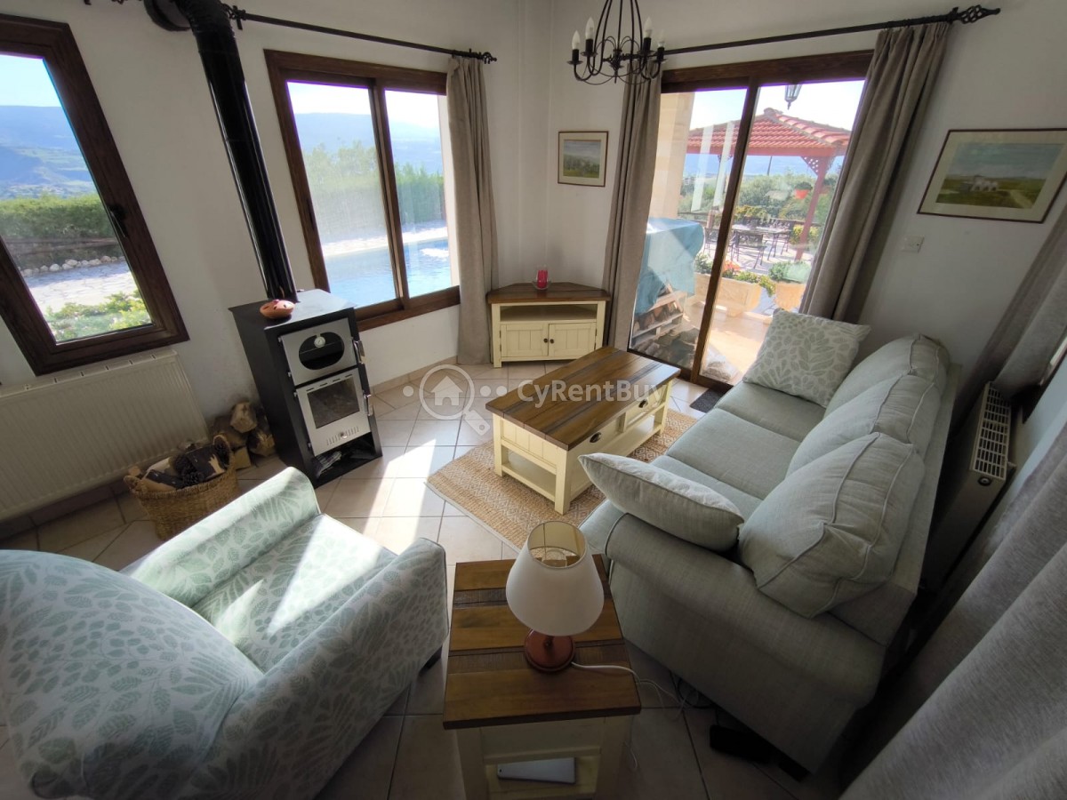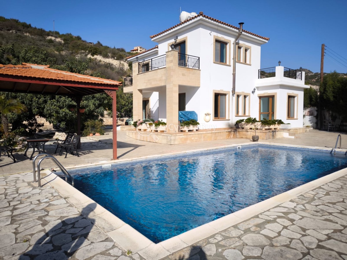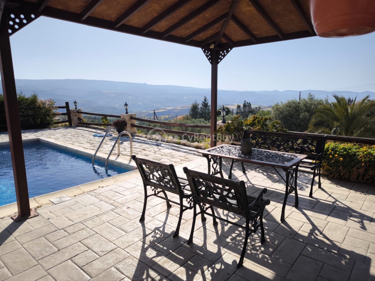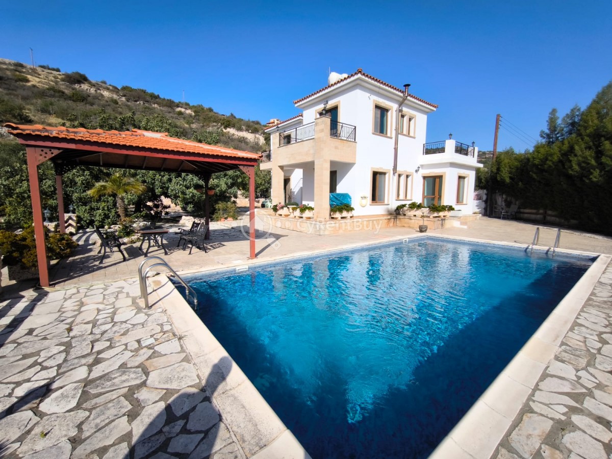 Boasting a spacious private swimming pool and expansive garden, the property is framed by breathtaking panoramic views of the sea and surrounding mountains.