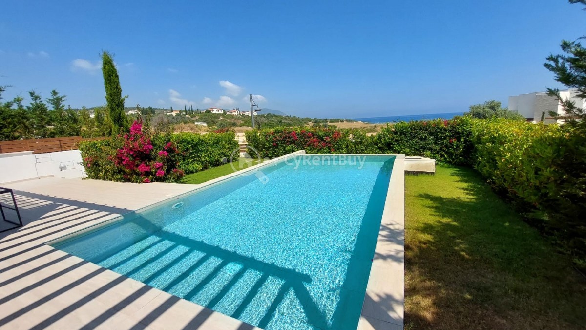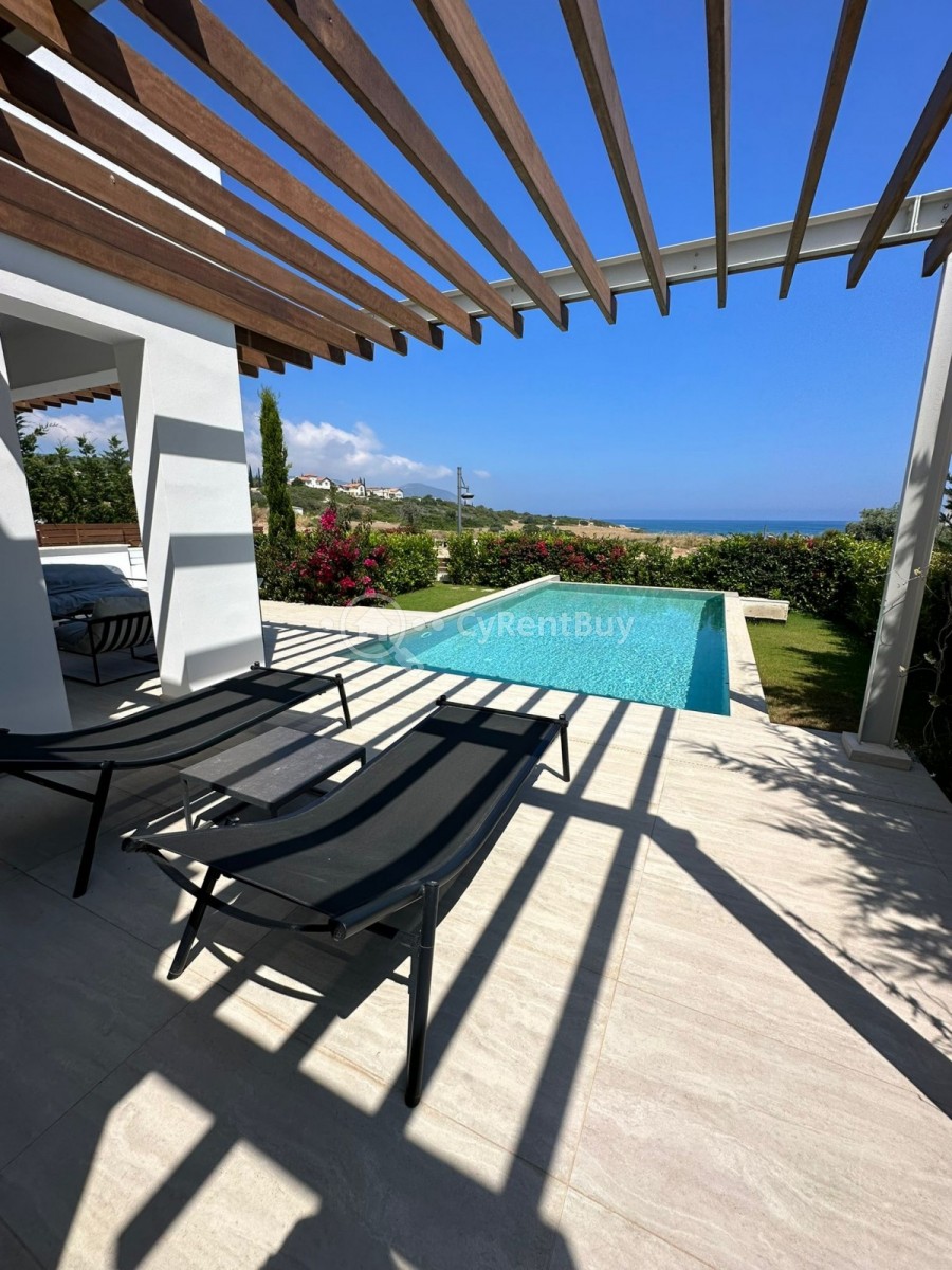 The outdoor area is designed for both relaxation and entertainment. Enjoy a refreshing dip in the pool, rinse off with the external shower, or simply unwind in the beautifully landscaped surroundings. The plot boundaries are a mix of high and low walls, offering privacy while maintaining an open and inviting feel.