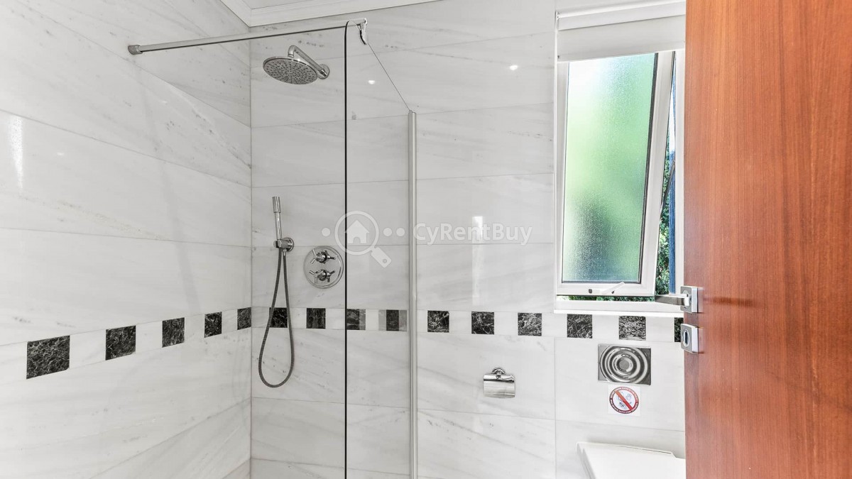 The third bedroom, located in the basement with separate access, is perfect for a nanny or older children and includes an en-suite with a walk-in shower. The villa is air-conditioned and centrally heated throughout.
