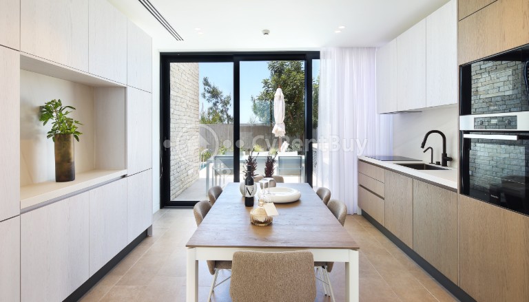 The open kitchen seamlessly connects to the dining area, perfect for entertaining.