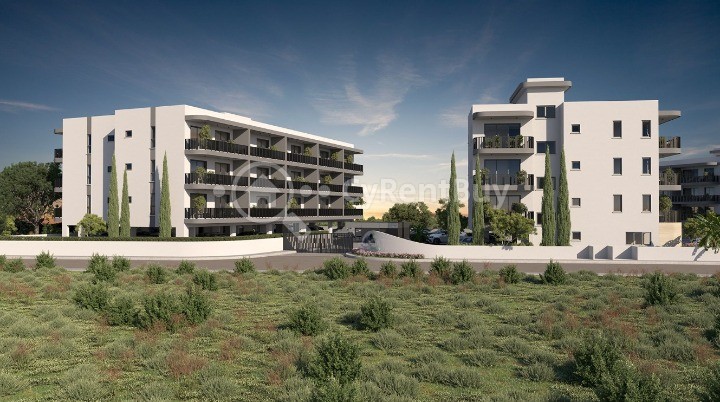 The development is enriched with premium lifestyle amenities, including a large communal swimming pool surrounded by lush landscaped gardens—perfect for relaxation under the Cyprus sun. A fully equipped gym overlooking the pool provides a motivating space for maintaining an active lifestyle.