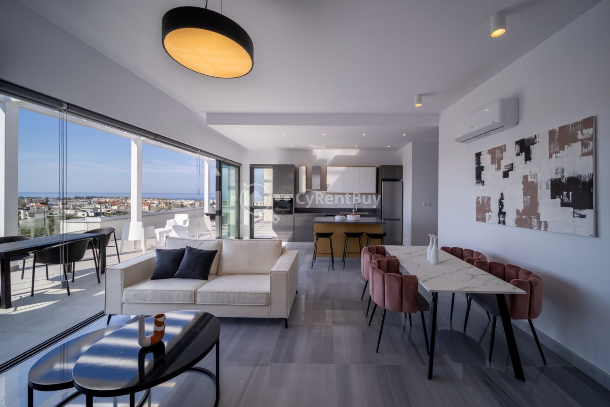 This exquisite 3-bedroom penthouse nestled in the heart of Paphos Town, offering easy access to daily conveniences and leisure activities. Enjoy stunning sea views from the outdoor area and communal pool on the rooftop garden.