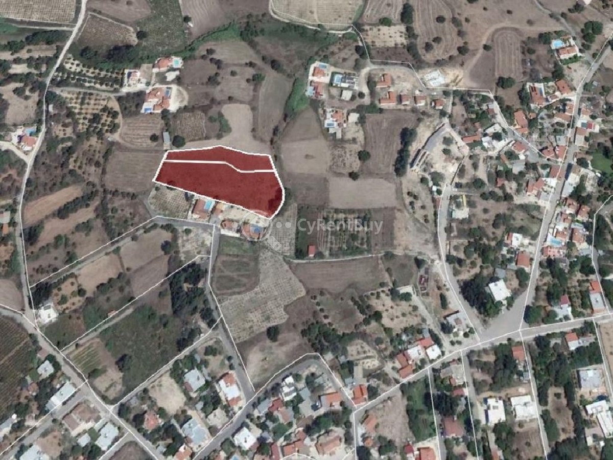 Residential field in Polemi community, in Paphos district. It is situated at a distance of approximately 350 meters northwest from the center of the community and approximately 2,2 km east from the main road Paphos - Polis Chrysochous. The property consists of two adjacent fields.