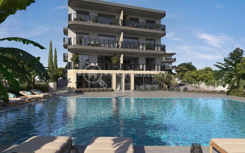 The development is enriched with premium lifestyle amenities, including a large communal swimming pool surrounded by lush landscaped gardens—perfect for relaxation under the Cyprus sun. A fully equipped gym overlooking the pool provides a motivating space for maintaining an active lifestyle.